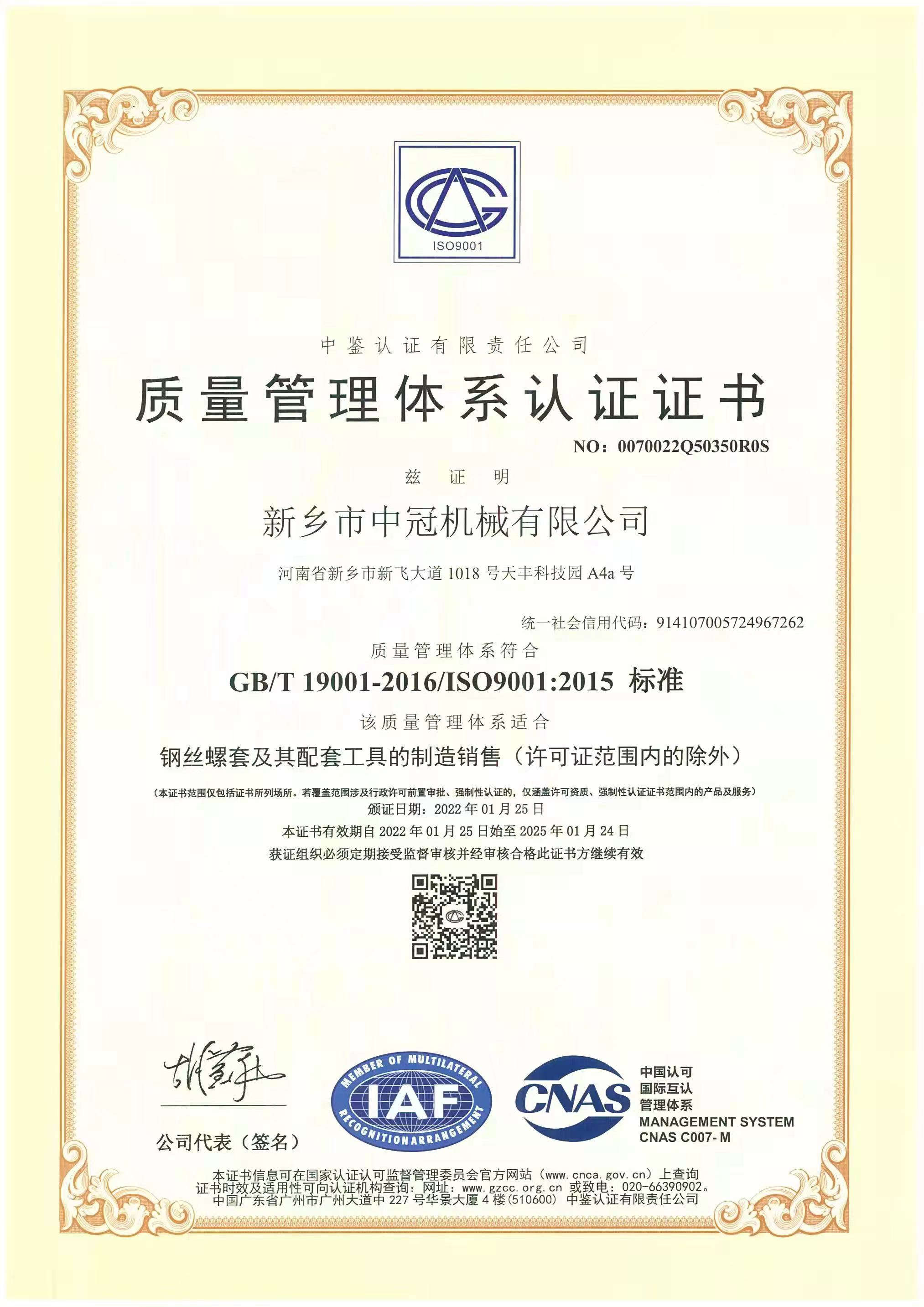 新鄉市中冠機械有限公司是從事鋼絲螺套產品及配套安裝工具技術研發(fā)、產品制造和銷售,并為客戶提供螺套使用全過程技術支持和服務的自動化制造型企業(yè)。
